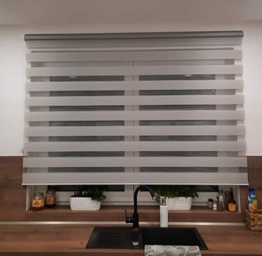 Rolety dzień i noc to nowoczesne osłony okienne z naprzemiennymi pasami materiału – raz przepuszczającymi, a raz zaciemniającymi światło. Dzięki temu w prosty sposób regulujesz ilość wpadającego światła i stopień prywatności, a z zewnątrz w dzień praktycznie nie widać wnętrza. To bardzo wygodne, eleganckie i obecnie jedno z najpopularniejszych rozwiązań do domu i biura.